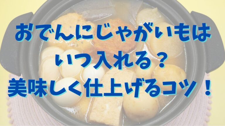 おでんにじゃがいもを入れるタイミングで迷っていませんか? 実は、入れる順番や火加減ひとつで、じゃがいもの食感や味の染み方が大きく変わります。 この記事では、おでんにじゃがいもを入れる最適なタイミングと、煮崩れしない下ごしらえのコツを詳しく紹介します。 下茹でする理由から、出汁を濁らせずに仕上げる火加減のポイント、翌日に美味しく食べる工夫まで徹底解説。 この記事を読めば、ホクホクで味のしみたじゃがい […]