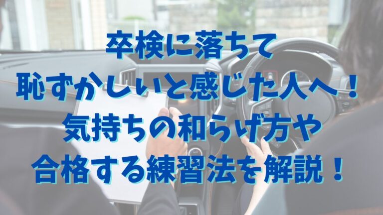 この記事では、卒検に落ちたときに感じる恥ずかしさの和らげ方、よくある失敗の原因、そして次の試験に向けた練習法を詳しく解説します。