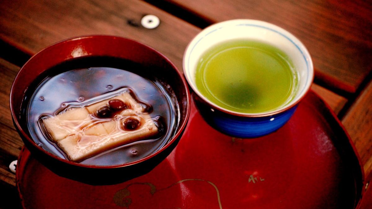 香ばしいほうじ茶は、おしるこの風味ととても相性がいいです。