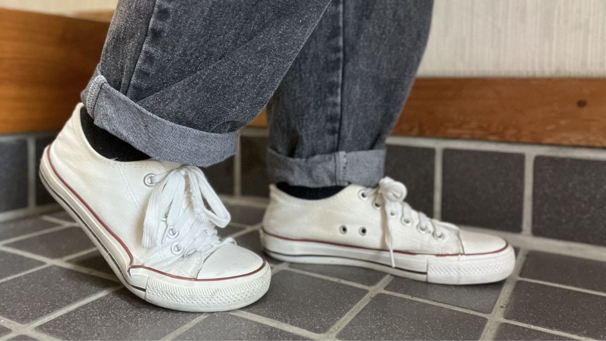 スニーカーの白さを守るうえで、まず裾の接触を最小限に抑えることを意識しましょう。