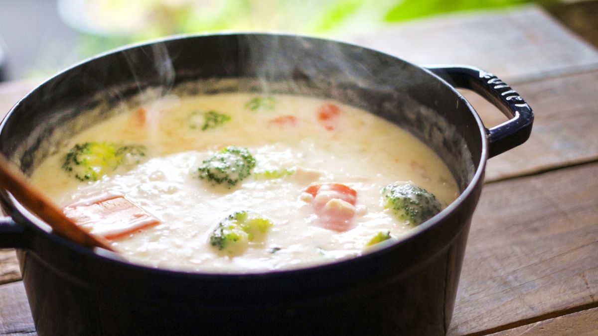 牛乳でまろやかさを出し、コンソメで旨味を補うことでバランスが整うため、違和感の少ない仕上がりになります。